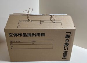 立体作品提出用箱の場合、同じ面に提出用宛名シールを貼ります。シールが貼れるように位置どってください。