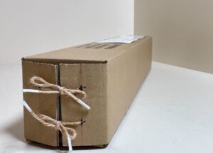 ■封筒:封口の1/3の開封が必要。 ■立体作品提出用箱・作品提出用角筒*:国内郵便約款に照らし、梱包方法が2種あります。 1)内容物がすぐに確認できるよう開口部を紐でくくる 2)箱側面に窓を開け、添削指導評価書の印字「文部科学省認可通信教育」が見える状態にする。 本学は作品の性質および加工の難易度を検証し、1)紐でくくる方法を推奨いたします。 梱包完成イメージ